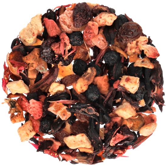 • skład: rodzynki, jabłko, kwiat hibiskusa, owoc aronii, papaja kandyzowana, owoc wiśni, owoc truskawki, aromat naturalny, czerwone płatki bławatka