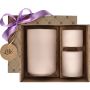 1. W pudełku znajdziesz fioletową wstążkę oraz bilecik, które ułatwią Ci stylowe zapakowanie prezentu. Odłóż je na bok i zachowaj, ponieważ przydadzą się podczas ostatniego kroku.
